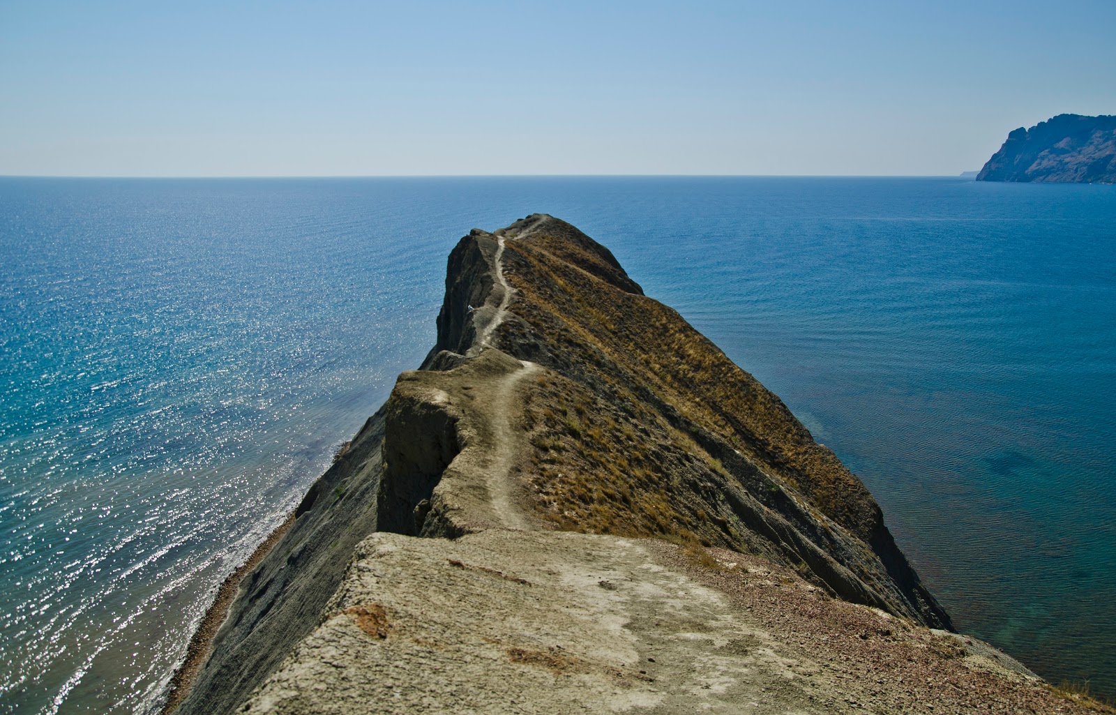 Отнюдь не лёгкий путь по острой пикообразной, палаточный скале. Рекомендую дойти не далее, как до середины. Опасно. Сфоткались и вернулись обратно. Идти надо, потому что неизвестно, сколько эта гора простоит. У подножия скалы есть залежи голубой глины. В течение дня скала много раз меняет свой цвет. Все зависит от того, как на нее направлены солнечные лучи. Гуляя по Коктебелю, обязательно обращайте внимание на цвет этой горы, и она вас многократно удивит!!!