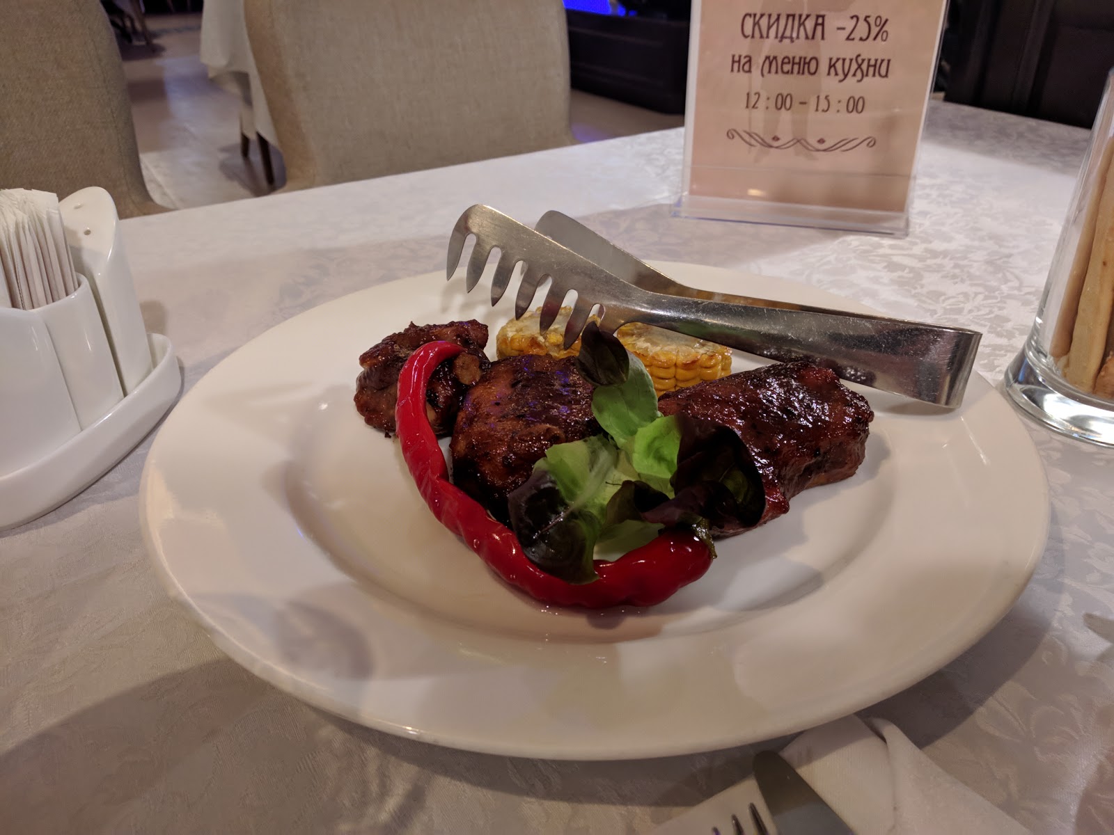 Мне очень понравился Гаспаччо с копченым лососем, пюрешка "как у бабушки" и, как ни странно, обычный салат из овощей, заправленный сметанкой!