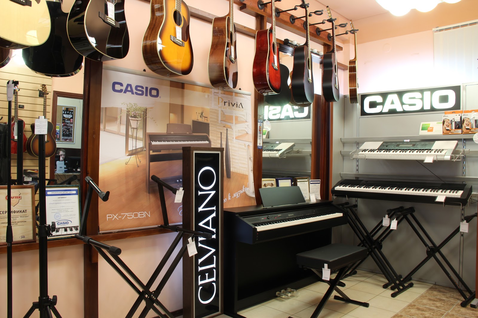 Хороший магазин. Если чего-то нет, то можно заказать. Квалифицированные продавцы, все объяснят и подскажут. Ездила во все музыкальные магазины города. Решила для себя, что только в этом " не впарят" , а подберут, то что действительно мне необходимо.