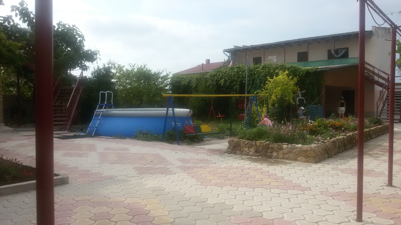 есть детский бассейн, игровая детская площадка, батут, теннисный стол,